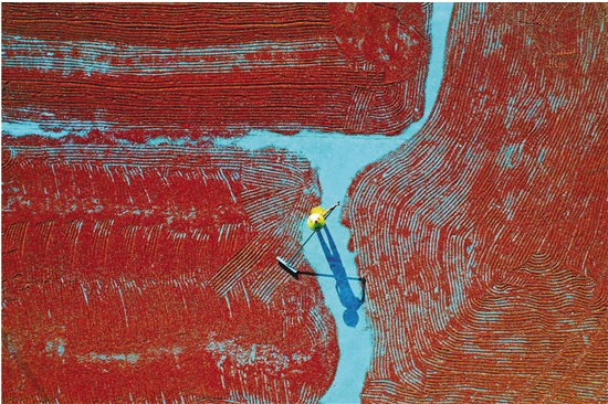 图为9月9日,农民在重庆市黔江区小南海镇大路社区晾晒高粱(无人机照片)。 新华社 杨敏 摄