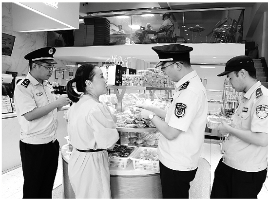 中秋节将至,临海市公安局杜桥派出所会同市场监管部门,开展食品抽检行动,确保月饼等节令食品的安全、卫生。 通讯员 叶明銮 摄