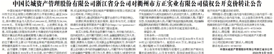 中国长城资产管理股份有限公司浙江省分公司对衢州市方正实业有限公司债权公开竞价转让公告