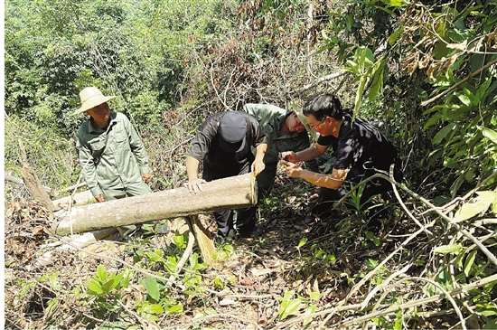 | 海南省公安厅森林公安局鹦哥岭保护区分局民警在案发现场取证(鹦哥岭保护区分局供图) |
