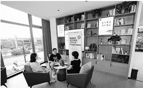 | 设立商会会客厅 近日,在杭州市富阳区银湖街道银湖商会会客厅内,会员企业代表在进行项目合作商讨。近年来,银湖街道持续做好企业服务保障,设立银湖商会会客厅一站式企业服务平台,开展交流学习、联谊交友、建言献策、项目推介等多种服务,并设立驻企指导员,为辖区内企业提供“一企一人、一企一策”服务,提增企业发展信心,优化营商环境。 新华社 徐昱 |