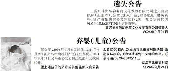望上述孩子的父母或其他监护人自公告之日起60日内,到义乌市儿童福利院认领,逾期未认领的,视为查找不到生父母的弃婴。联系电话:0579-85435115。