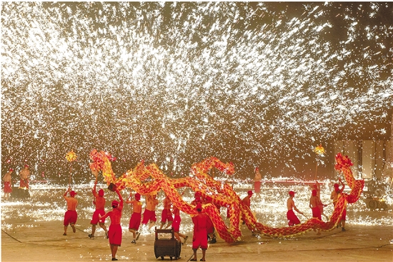 | 这是9月27日拍摄的《追梦·铜梁龙》演出现场。 国庆假期即将来临,因夏日持续高温而暂停演出的大型非遗山水实景剧《追梦·铜梁龙》在重庆市铜梁区恢复演出。铜梁被誉为“中国龙灯艺术之乡”,《追梦·铜梁龙》融合水云龙、荷花龙、铁花火龙等多样龙舞,展现铜梁龙舞及龙灯彩扎的非遗魅力。 新华社 黄伟 摄 |
