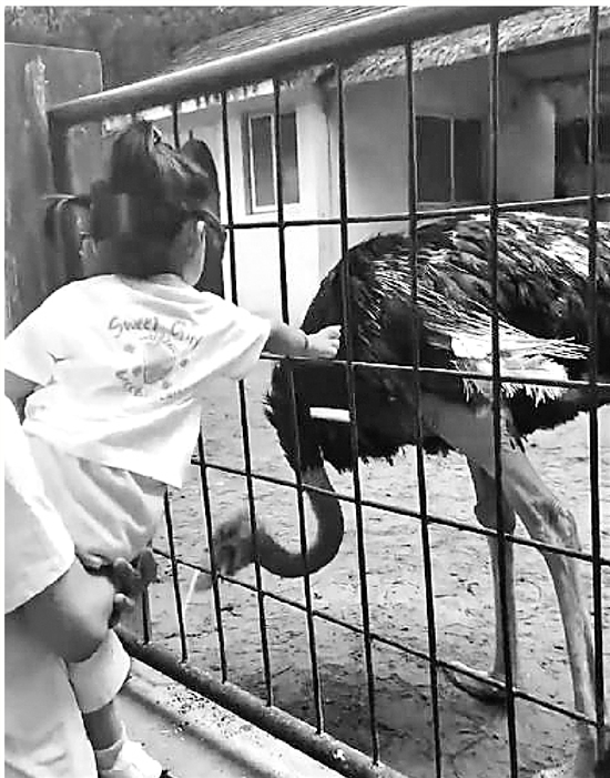 | 小女孩掉落的小红旗被鸵鸟啄起 |