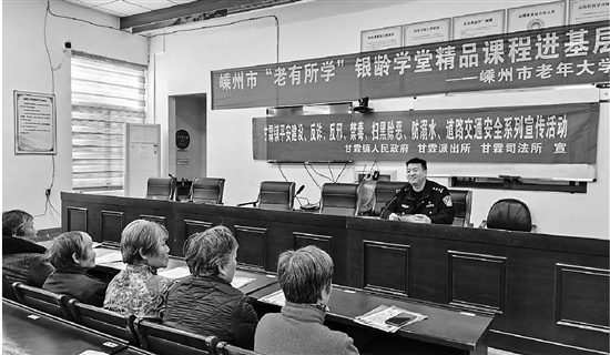 本报讯 近日,嵊州市公安局甘霖派出所联合甘霖镇政府、甘霖司法所到甘霖镇老年大学,开展平安建设、反诈、反邪教、禁毒、扫黑除恶、防溺水、道路交通安全系列宣讲活动。