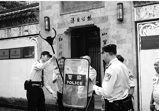 近日,武义县公安局熟溪派出所民警对武义璟园古民居博物馆等地的保安员开展反恐防暴培训,“手把手”指导如何使用防爆装备等,进一步提高保安员的应急处突能力。
