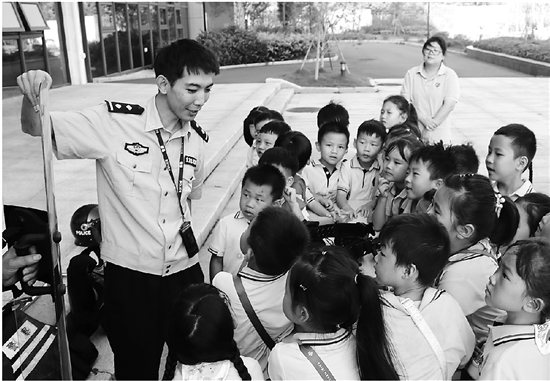 近日,温州龙湾公安金海派出所举行警营开放日活动,邀请金海湖幼儿园的萌娃们前来“沉浸式”体验警营生活,近距离接触警用装备、聆听警察英勇故事,感受“警”彩世界。
