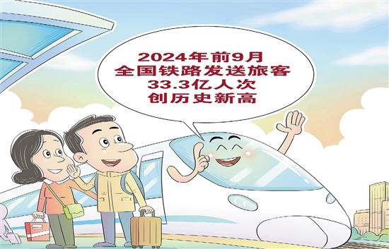 记者近日从中国国家铁路集团有限公司获悉,今年1至9月,全国铁路发送旅客33.3亿人次,同比增长13.5%,再创历史同期新高,全国铁路运输安全平稳有序。