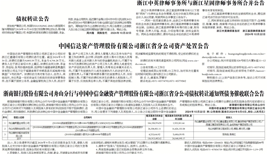 浙商银行股份有限公司舟山分行与中国中信金融资产管理股份有限公司浙江省分公司债权转让通知暨债务催收联合公告