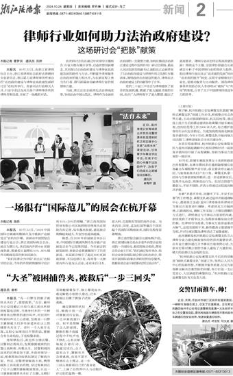 当前,浙江正在全面深化法治领域改革,争创法治中国示范区。律师作为全面依法治国的一支重要力量,如何在推进法治浙江建设过程中发挥作用?研讨会现场,最高人民法院原党组副书记、副院长江必新带来了《法治政府建设与律师作用之发挥》专题讲座,围绕政府法治建设的重点、律师在法治政府建设上的贡献等作了分享。