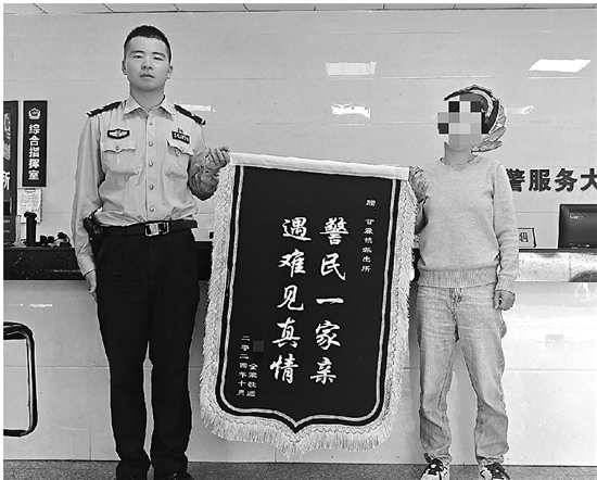 本报讯 近日,小磊(化名)父亲将一面写着“警民一家亲,遇难见真情”的锦旗送到了嵊州市公安局甘霖派出所。