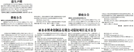 中国信达资产管理股份有限公司浙江省分公司(以下简称“中国信达浙江分公司”)已于2024年10月29日9时至2024年10月29日11时在中国信达浙江分公司淘宝网资产竞价网络平台上(http://zc.paimai.taobao.com)进行了公开竞价活动,仅一名竞买人(竞买号O9908)出价1000万元,现补登竞买公告如下: