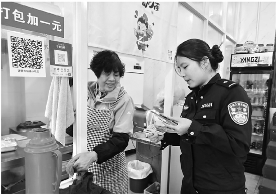近日,诸暨市公安局店口派出所民警深入辖区商圈,开展“反诈宣传进商铺”活动。民警通过发放宣传单、现场讲解等方式,向沿街商户及过往群众介绍常见的电信网络诈骗类型,提醒大家要警惕来历不明的电话、短信,做到“不听、不信、不转账”。