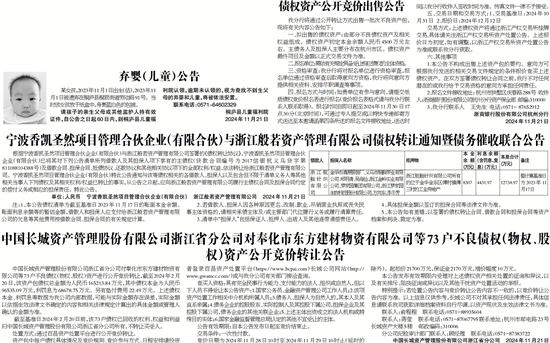 中国长城资产管理股份有限公司浙江省分公司 2024年11月21日