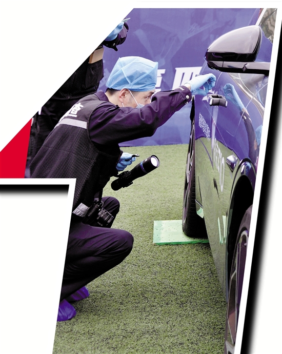 全国刑事技术技能大赛一年一届,自2021年起连续举办,今年在往届大赛的基础上,团体赛首次以真实汽车为场景,模拟盗窃车内财物现场,案情设计和现场布置力求还原真实案件场景。