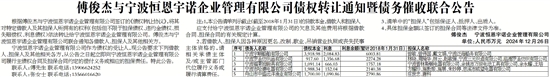 根据傅俊杰与宁波恒恩宇诺企业管理有限公司签订的《债权转让协议》,将其对特定借款人及其担保人所拥有的权利(包括但不限于担保债权、违约金债权、损失赔偿权、利息债权)依法转让给宁波恒恩宇诺企业管理有限公司。傅俊杰与宁波恒恩宇诺企业管理有限公司联合通知各借款人、担保人及其他相关方。