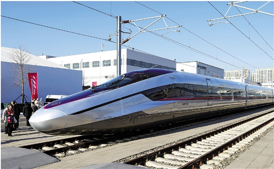 | 12月29日拍摄的CR450BF动车组样车。 记者从中国国家铁路集团有限公司获悉,12月29日,运营时速400公里的CR450动车组样车在北京发布,这标志着“CR450科技创新工程”取得重大突破,将极大提升中国铁路科技创新水平和科技自立自强能力,进一步巩固扩大中国高铁技术世界领跑优势。 新华社 鞠焕宗 摄 |