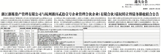 浙江浙栋资产管理有限公司与杭州浙珏贰拾壹号企业管理合伙企业(有限合伙)债权转让暨债务催收联合公告