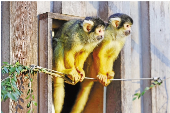图为1月3日,记者在英国伦敦动物园拍摄的松鼠猴。