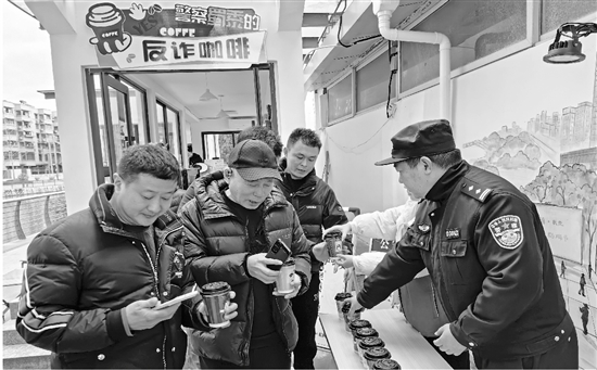 近日,温州龙湾公安状元派出所联合状元街道龙跃社区月下咖啡屋,将反诈元素与咖啡文化相结合,创新“反诈咖啡”答题赠饮模式,吸引更多年轻人了解反诈知识,筑牢全民反诈防火墙。 通讯员 董清清 摄