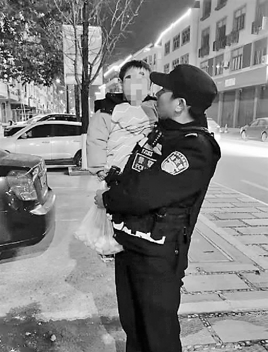 朱思远松了一口气,担心外面天冷易冻,就先将小男孩抱上警车,等待他的家人。
