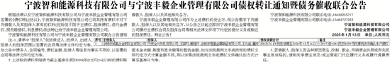 宁波智和能源科技有限公司与宁波丰毅企业管理有限公司债权转让通知暨债务催收联合公告