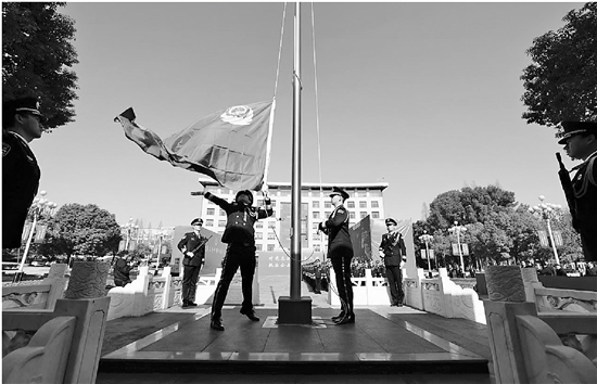| 向警旗敬礼 近日,浙江省司法厅在省乔司监狱举办第五个中国人民警察节庆祝活动。伴随着中国人民警察警歌,中国人民警察警旗徐徐升起,参加活动的民警代表身着警礼服整齐列队,面向警旗庄严敬礼。全体民警重温了入警誓词,现场还宣读了浙江省司法厅关于授予警衔的命令,并为首次授予警衔的新警代表颁发警衔标志。 活动以视频形式举行,在省乔司监狱设主会场,省监狱管理局、省戒毒管理局、浙江警官职业学院、全省监狱戒毒单位设分会场,全省司法行政系统3000余名民警代表参加活动。 通讯员 林少静 本报记者 徐新怡 |