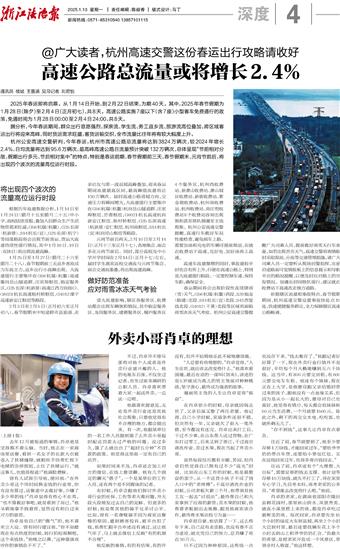 浙江法治报 深度 00004 高速公路总流量或将增长2.4% 2025-01-13 浙江法治报2025-01-1300007;27271839;27271937 2 2025年01月13日 星期一