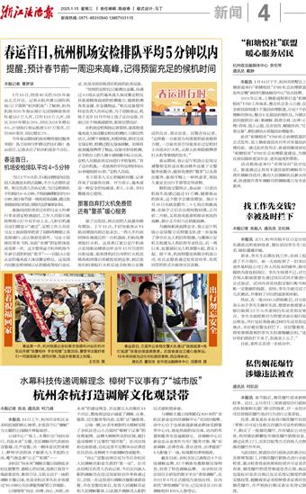 浙江法治报 新闻 00004 春运首日,杭州机场安检排队平均5分钟以内 2025-01-15 27275561 2 2025年01月15日 星期三