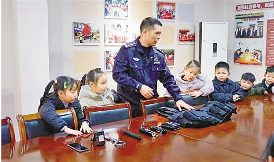 近日,诸暨市公安局城东派出所举办警营开放日活动,邀请诸暨市青少年宫幼儿园小朋友走进警营。民警带领萌娃们参观了接警大厅等地,介绍了如何正确拨打110报警电话、警用装备的性能及应用场景等,令萌娃们感受到别样“警”彩。