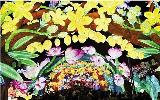 1月15日晚,第31届自贡国际恐龙灯会在四川省自贡市中华彩灯大世界亮灯试展。本届灯会以“灯贺中华 气象万千”为主题,吸引游客前来赏灯游园。