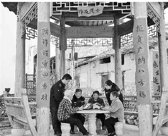 近日,云和公安梅源派出所结合“冬季行动”,开展 “反诈对联 共护平安”宣传活动。书法爱好者和民警一起书写、张贴反诈主题对联,并现场向村民们宣讲反诈知识。