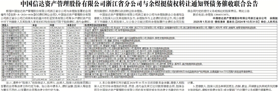 中国信达资产管理股份有限公司浙江省分公司与余煜挺债权转让通知暨债务催收联合公告