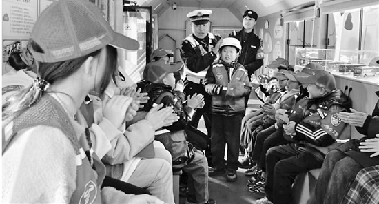 当日,小义警来到公交公益智行小站,交警大队铁骑中队队员周银冠为他们上了“公交微课堂”,并讲解安全出行常识。