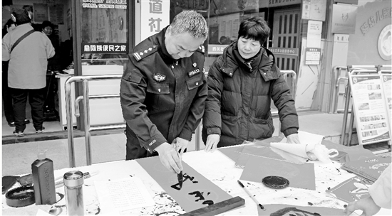 连日来,金华市公安局江南分局西关派出所开展“警服送警‘福’,反诈禁毒不打烊”活动,为群众送上充满年味的平安礼物。 通讯员 王雨佳