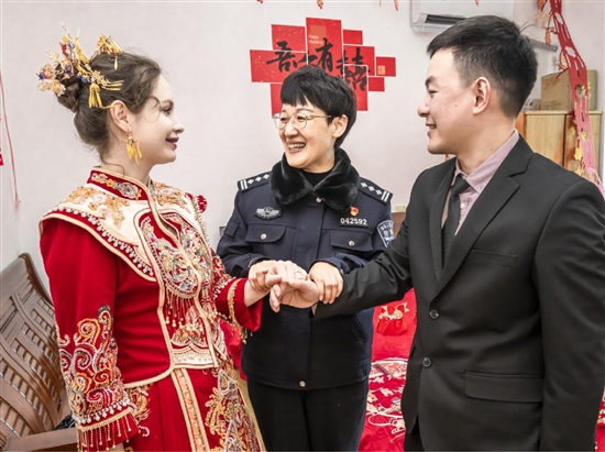 1月21日,新昌籍小伙刘建波与外籍姑娘丽莎,在众多亲朋好友的祝福中喜结良缘。