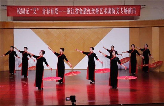 每年的12月1日是世界艾滋病日,艺术团都会组织团员到大学里进行防艾宣传。“那段时间里,我们几乎每天都有演出任务。”2024年从11月开始,艺术团陆续在30所大学开展形式丰富的演出。
