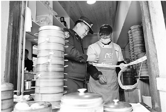 在新昌县的网红打卡点南街,消防人员随机走进一家小吃店,对店内的消防设施进行检查,提醒店主规范摆放轻便消防水龙,并现场指导店主正确使用双层卷水带。走进厨房,消防人员提醒工作人员务必定期清理油烟管道,并介绍了油锅起火等险情发生时使用灭火毯的注意事项。