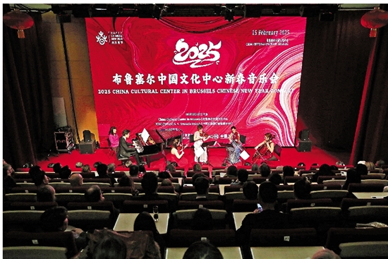 | 这是2月15日在比利时布鲁塞尔中国文化中心拍摄的新春音乐会现场。 当日,比利时布鲁塞尔中国文化中心举行2025年新春音乐会。音乐会上,中外艺术家为观众献上《春节序曲》《彩云追月》《第二圆舞曲》《父亲的草原母亲的河》等作品,展现了中西音乐的独特魅力。 |