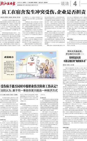 浙江法治报 说法 00004 受伤骑手能否同时申报职业伤害险和工伤认定? 2025-03-14 27364344 2 2025年03月14日 星期五