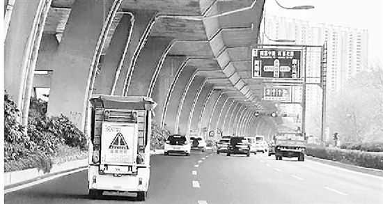 | 一辆无人快递车在机动车道上行驶 曹梦琪 摄 |