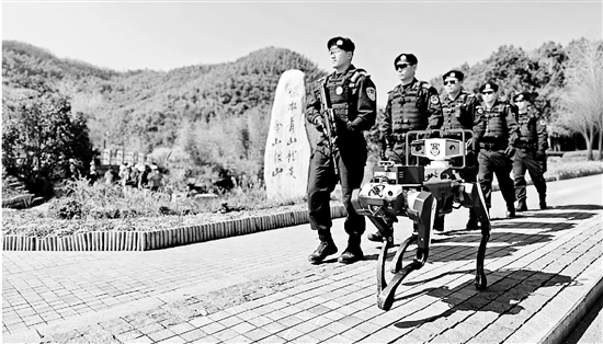 | 近日,安吉县公安局巡特警大队迎来一名特殊成员——警用机器狗,这名科技感十足的“新警员”一亮相就引起了市民的关注。在余村、生态广场、九州昌硕广场等区域,警用机器狗和特警队员一起巡逻,吸引不少市民驻足拍照。 通讯员 王英慧 |
