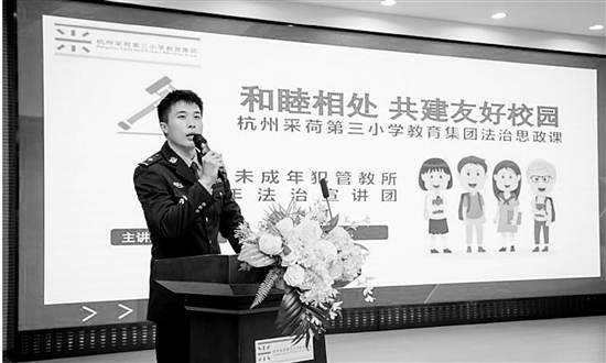 “小朋友要学会用法律武器维护自身权益……”在采荷三小江锦校区的阶梯教室里,省未成年犯管教所青年民警开讲普法宣讲第一课。民警精心设计互动问答环节,将晦涩法条转化为生动故事,教育引导青少年学生学法明理、守法立身,在200多名孩子的心中播下遵纪守法的种子。