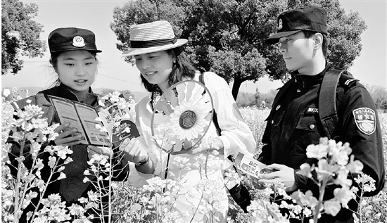 | 护航“赏花经济” 近日,位于丽水市莲都区碧湖镇资福村的油菜花基地里,各色油菜花竞相绽放,吸引了大批游客。丽水市公安局莲都区分局碧湖派出所通过“步巡+无人机巡”立体防控模式,快速响应游客求助,民辅警穿梭于花田间,手持宣传资料,一边动态巡逻,一边向游客普及反诈、森林防火及野生动植物保护等知识,为花海增添了一抹“警色”。 通讯员 王豪 朱乐函 |