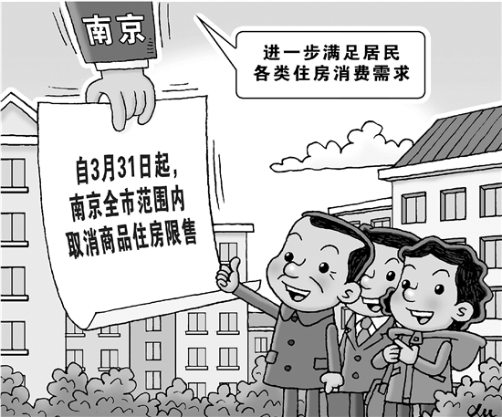 自3月31日起,南京全市范围内取消商品住房限售。这是南京市在31日举行的进一步促进南京房地产市场平稳健康发展有关政策新闻发布会上发布的信息。