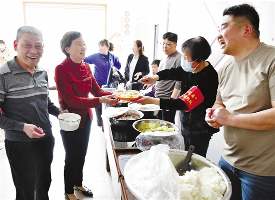 4月8日,建德市新安江街道明珠社区“一起来”志愿服务队的志愿者在广兴小区爱心助餐点,为老人们热情提供盛饭打菜服务。今年以来,该社区设置两处爱心助餐点,每天为60周岁以上老人提供中晚餐优惠可口的饭菜,深受用餐老人的好评。