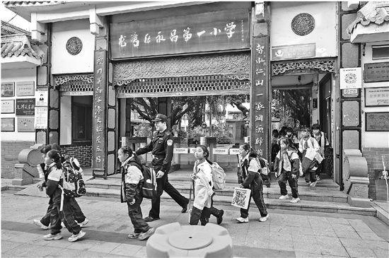 “每天收获几百声‘警察叔叔好’,这比咖啡还提神!”近日,温州龙湾公安永中派出所民警周逸涵喜笑颜开地说。开学以来,他在永昌第一小学门口开展护学岗工作,当好校园“门神”,压实“护校安园”责任,为师生营造安全有序的校园环境。