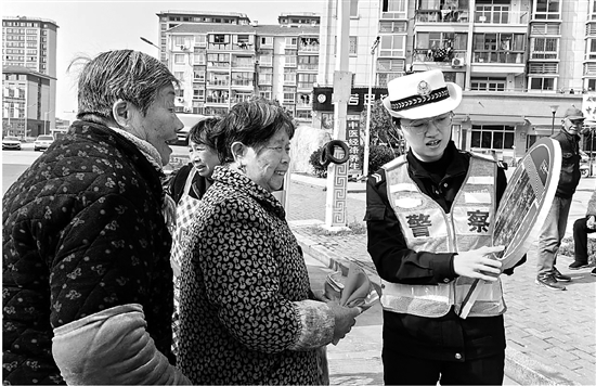 近日,临海市公安局交警大队民辅警在达道村村口老年人聚集点,开展交通安全宣传。交警用方言讲解“红灯停绿灯行”“一停二看三通过”等安全常识,并为老人送上反光袖套、手套等。
