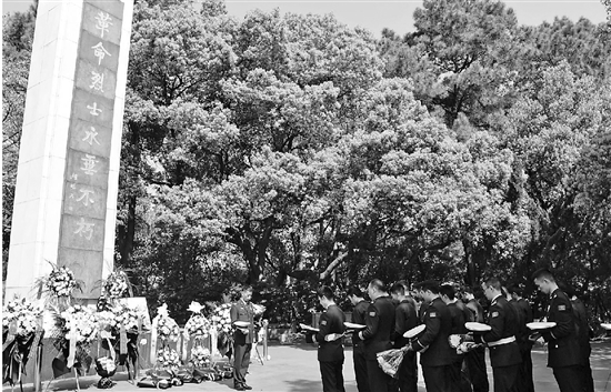 日前,杭州市临平区消防救援大队开展“弘扬英烈精神,凝聚奋进力量”活动,全体队员在革命烈士纪念碑前肃立默哀,表达对英烈的深切缅怀和崇高敬意。 通讯员 陈倩宇