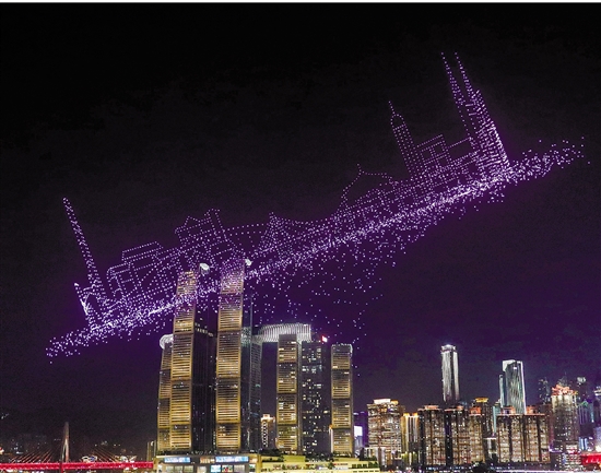 | 4月19日晚,“魅力重庆”常态化无人机灯光秀在重庆两江四岸核心区进行首场正式展演。5000架无人机在空中不断变化,勾勒出魅力重庆、黄葛树、山茶花、重庆地标建筑、轨道列车等12组具有重庆辨识度的画面。 “魅力重庆”无人机灯光秀展演依托重庆两江四岸夜景,由城市亮灯仪式和无人机表演构成。亮灯仪式以3分钟光影叙事展现城市脉络;无人机表演以“月月焕新”模式,每月推出特色主题,通过15分钟左右空中诗画,演绎“山水人城”多维联动的视觉盛宴。 据了解,无人机灯光秀将在每周六以及五一、中秋、国庆、春节等节假日和重要时间节点进行,全年预计演出90场。 新华社 黄伟 摄 |